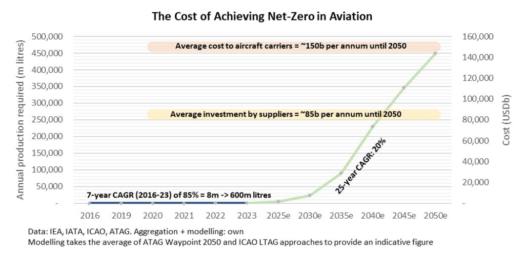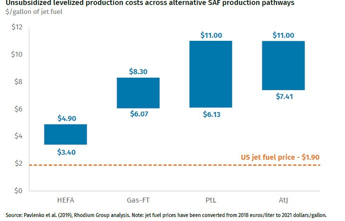 The production cost of cleaner fuel in aviation